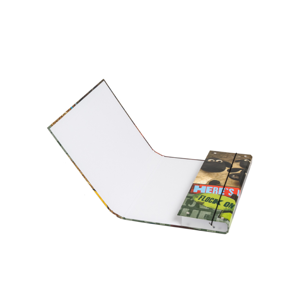 Zamykana gumką, która uniemożliwia wypadnięcie przedmiotów z teczki.