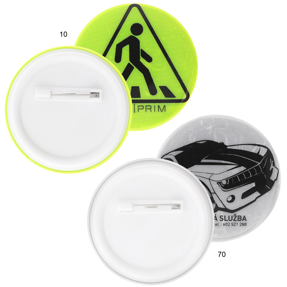 Plastová vysoce viditelná placka se spínacím špendlíkem