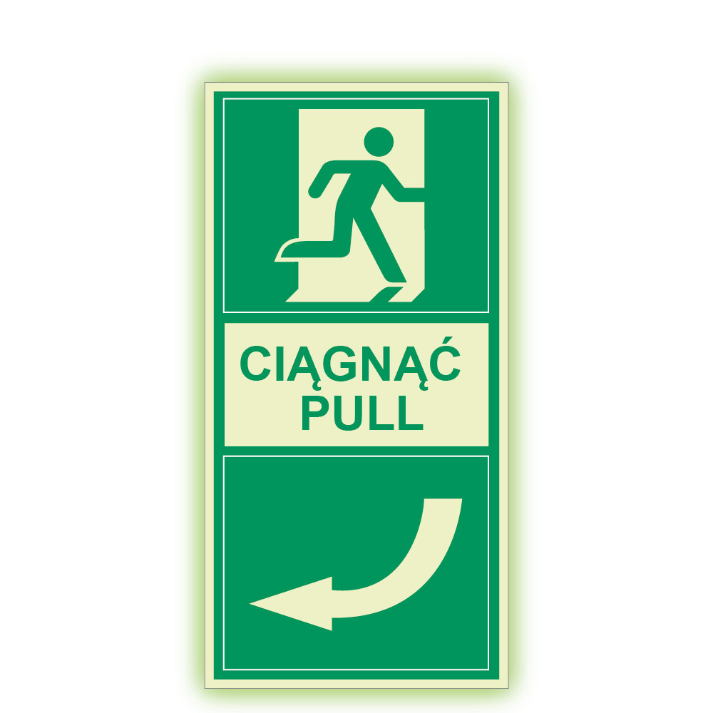 Ciągnąć w lewo - fotoluminescencyjny znak, płyta PVC 2 mm 200x100 mm