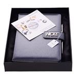 Notatnik zawiera: pętelkę na długopis, metalowy długopis oraz magnetyczne zamknięcie.