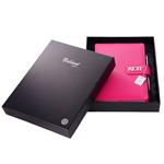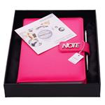 Notatnik zawiera: pętelkę na długopis, metalowy długopis oraz magnetyczne zamknięcie.