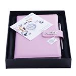 Notatnik zawiera: pętelkę na długopis, metalowy długopis oraz magnetyczne zamknięcie.