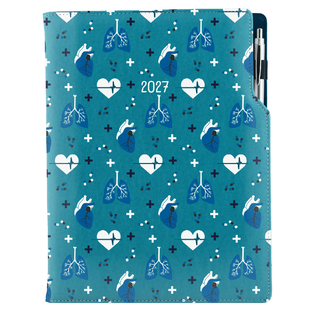 Kalendarz książkowy DESIGN tygodniowy A4 2027 polski - turkusowy Doktor - serce