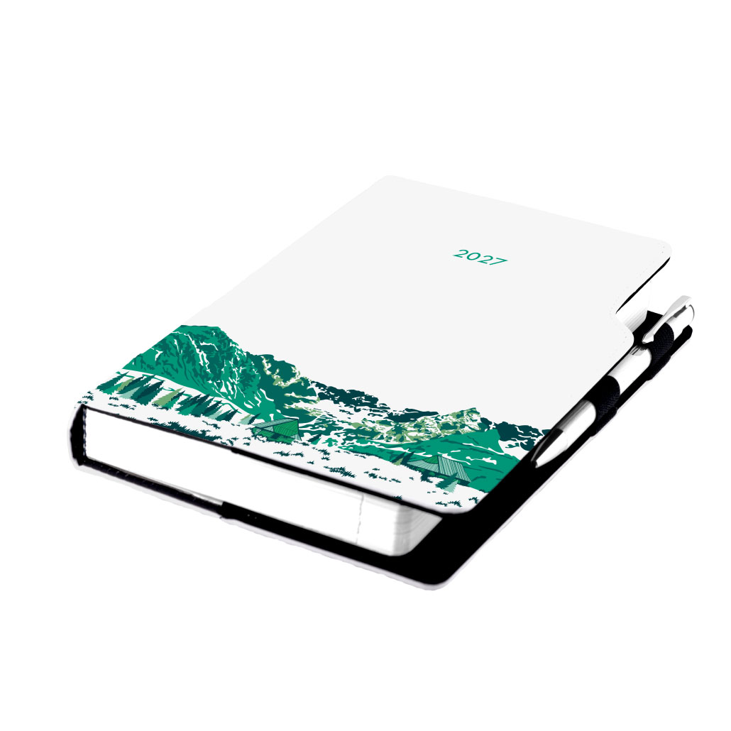 Kalendarz książkowy DESIGN dzienny A5 2027 polski - biały - Góry