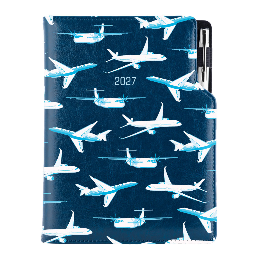 Kalendarz książkowy DESIGN dzienny B6 2027 polski - granatowy - Samoloty