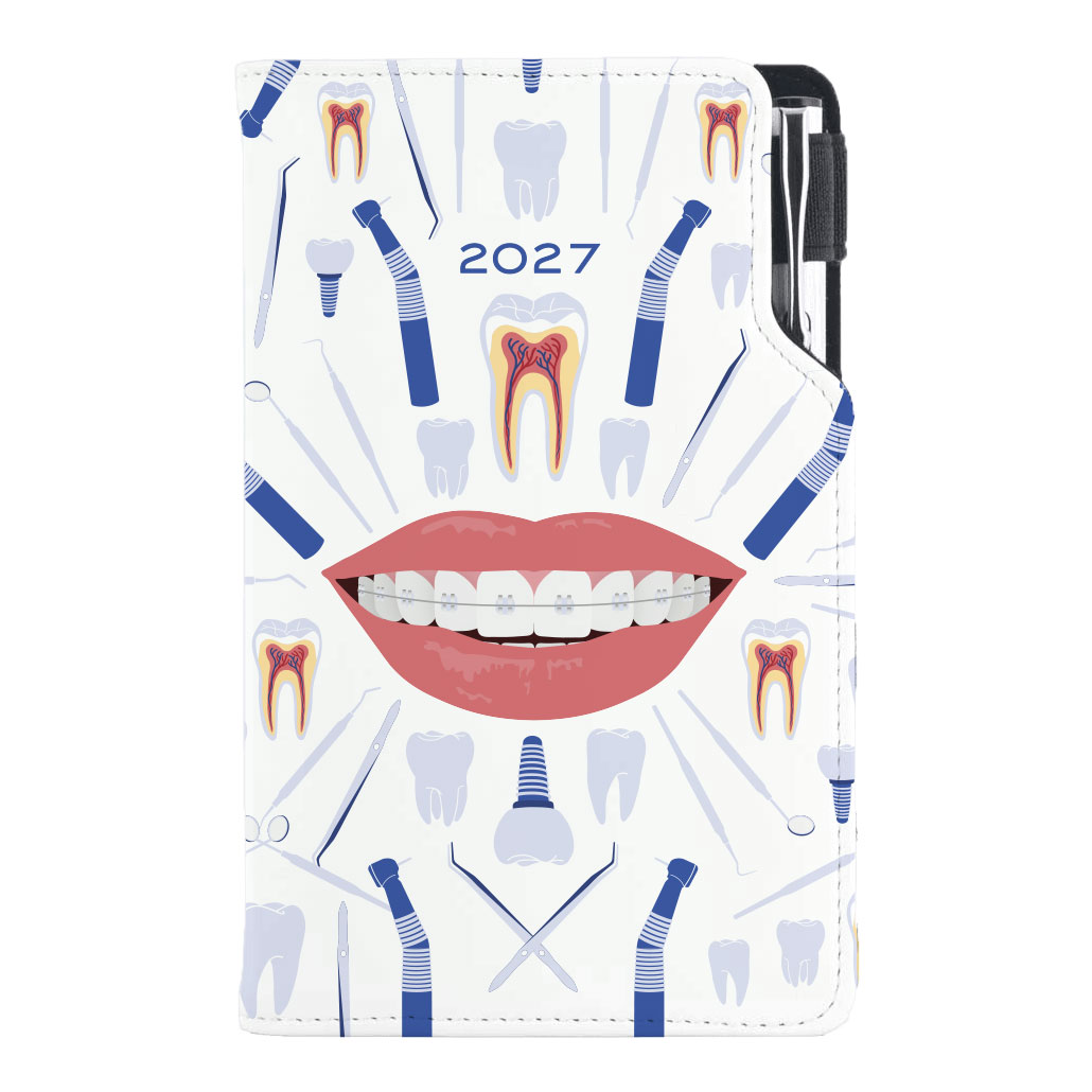 Kalendarz książkowy DESIGN tygodniowy kieszonkowy 2027 polski - biały - Dentysta