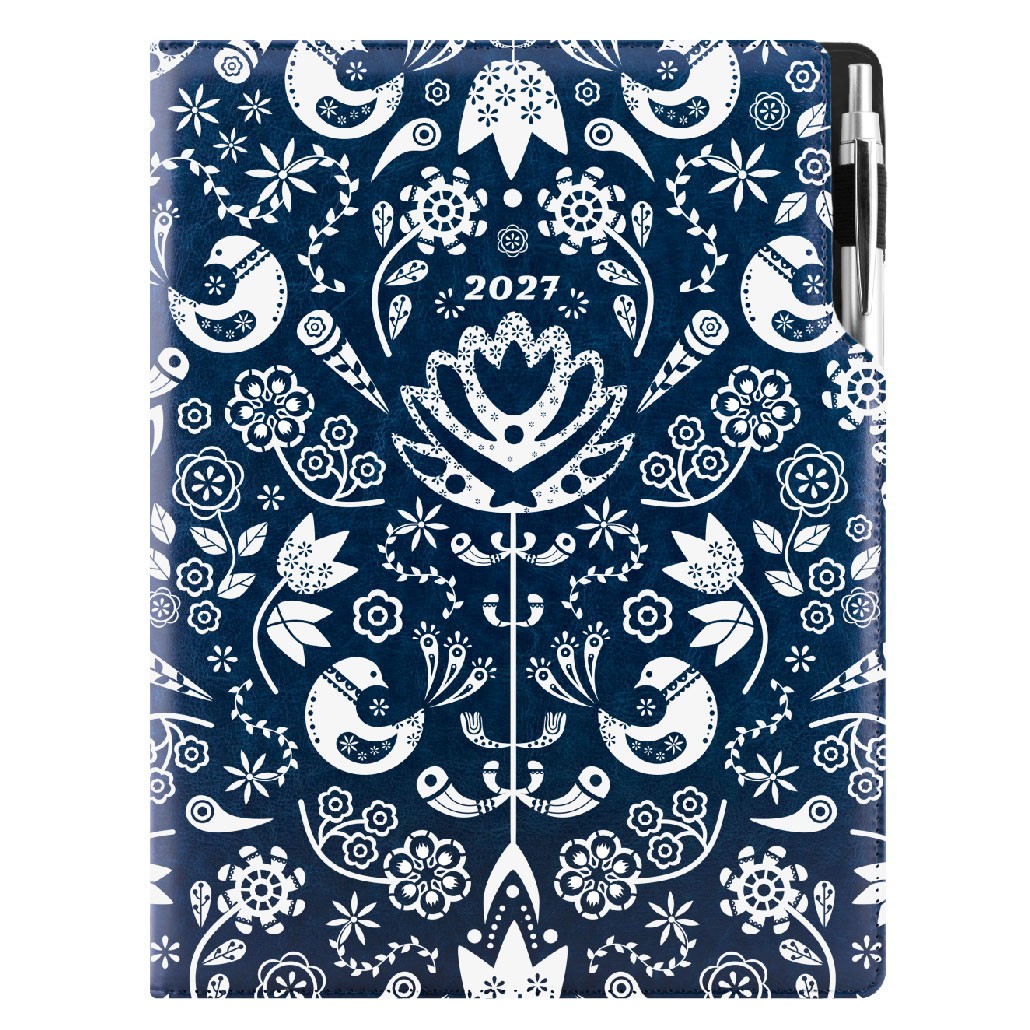 Kalendarz książkowy DESIGN tygodniowy A4 2027 polski - granatowy - Folk
