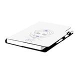 Zawiera: okrągłe odrywane rogi, białą zakładkę i długopis