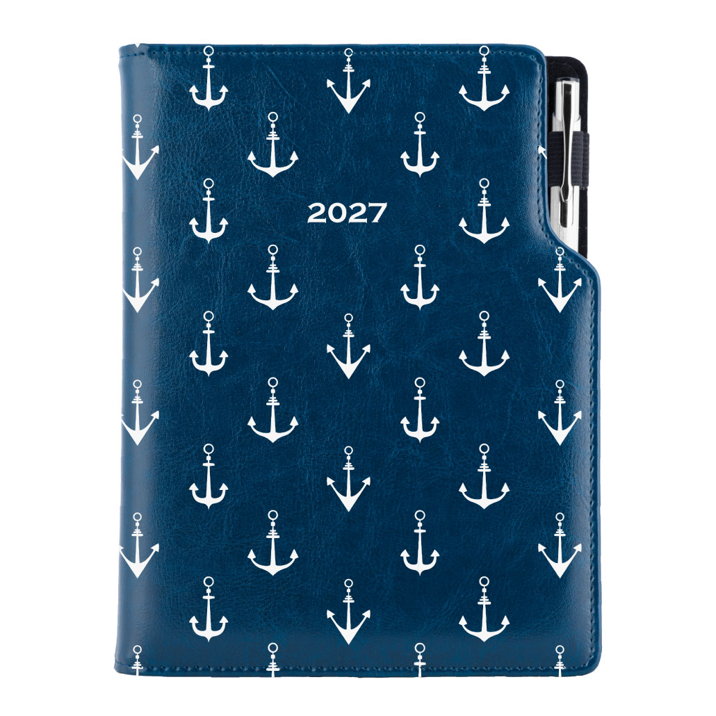 Kalendarz książkowy DESIGN tygodniowy B5 2027 polski - granatowy - marynarski- kotwice