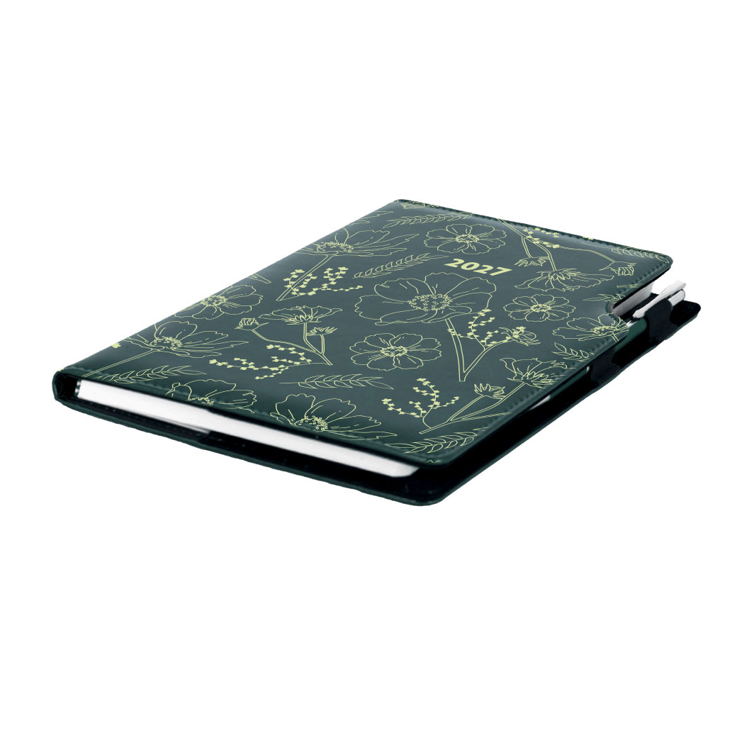 Kalendarz książkowy DESIGN tygodniowy B5 2027 polski - zielony - kwiatki