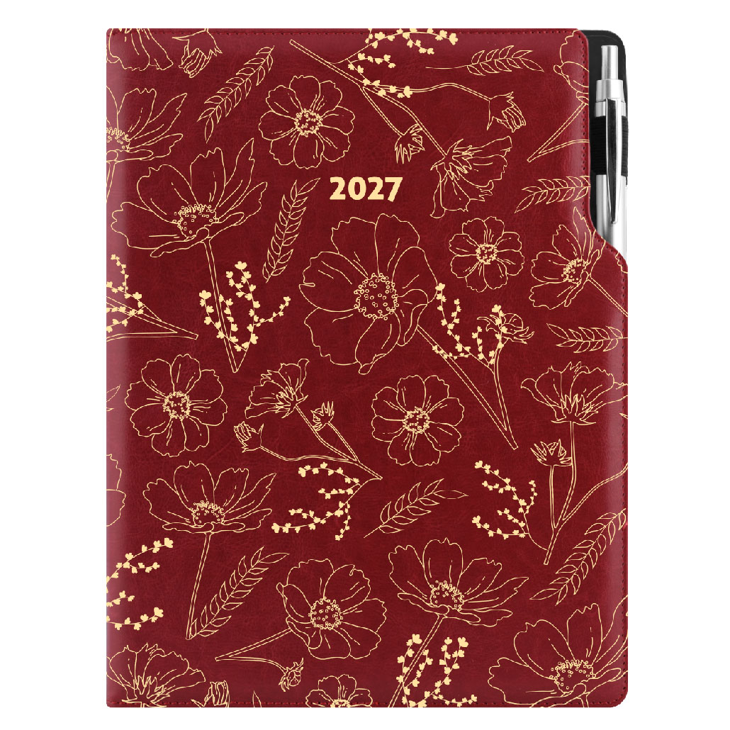 Kalendarz książkowy DESIGN dzienny A4 2027 polski - bordo - kwiaty