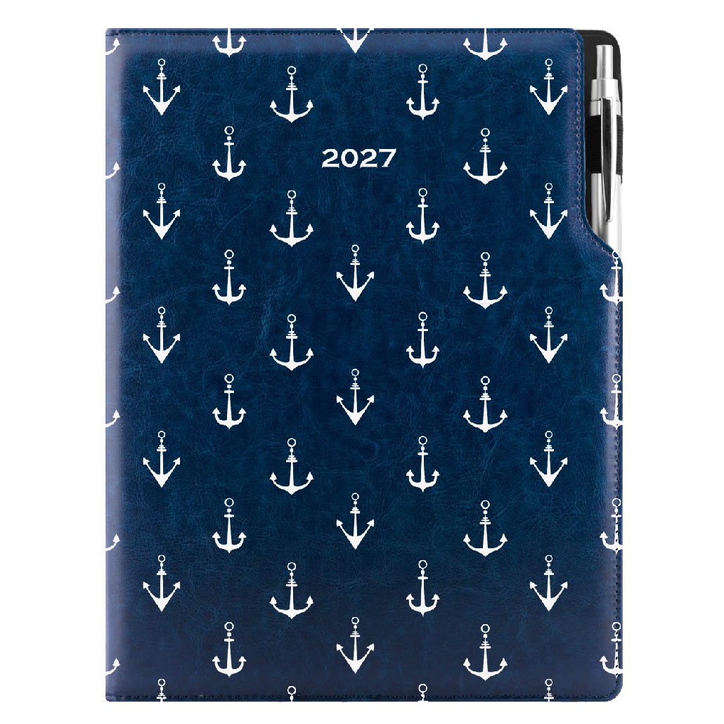 Kalendarz książkowy DESIGN dzienny A4 2027 polski - granatowy - marynarski- kotwice