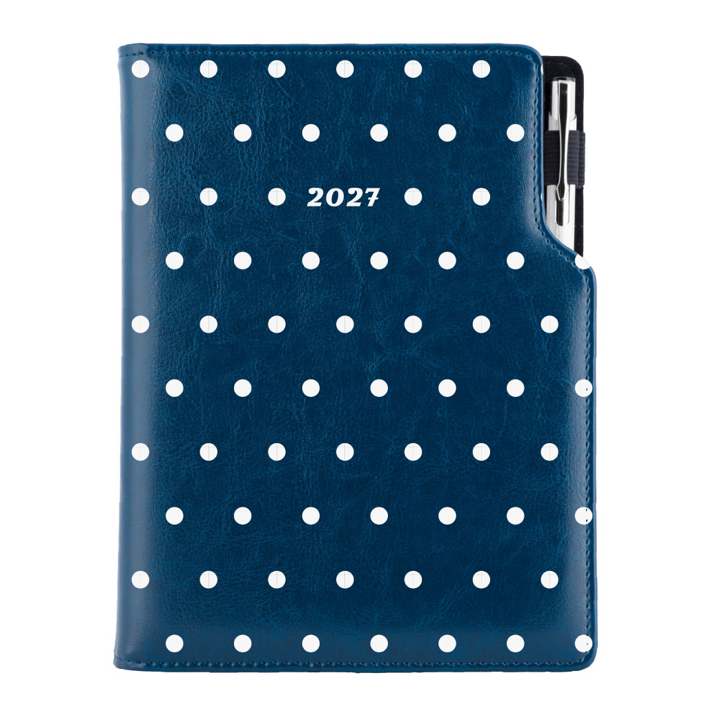 Kalendarz książkowy DESIGN dzienny B6 2027 polski - granatowye - groszki