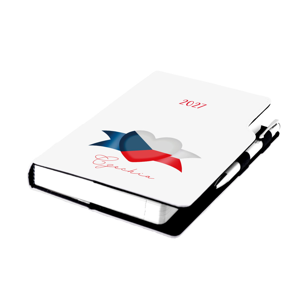 Kalendarz książkowy DESIGN dzienny B6 2027 polski - biały - Czeska - flaga