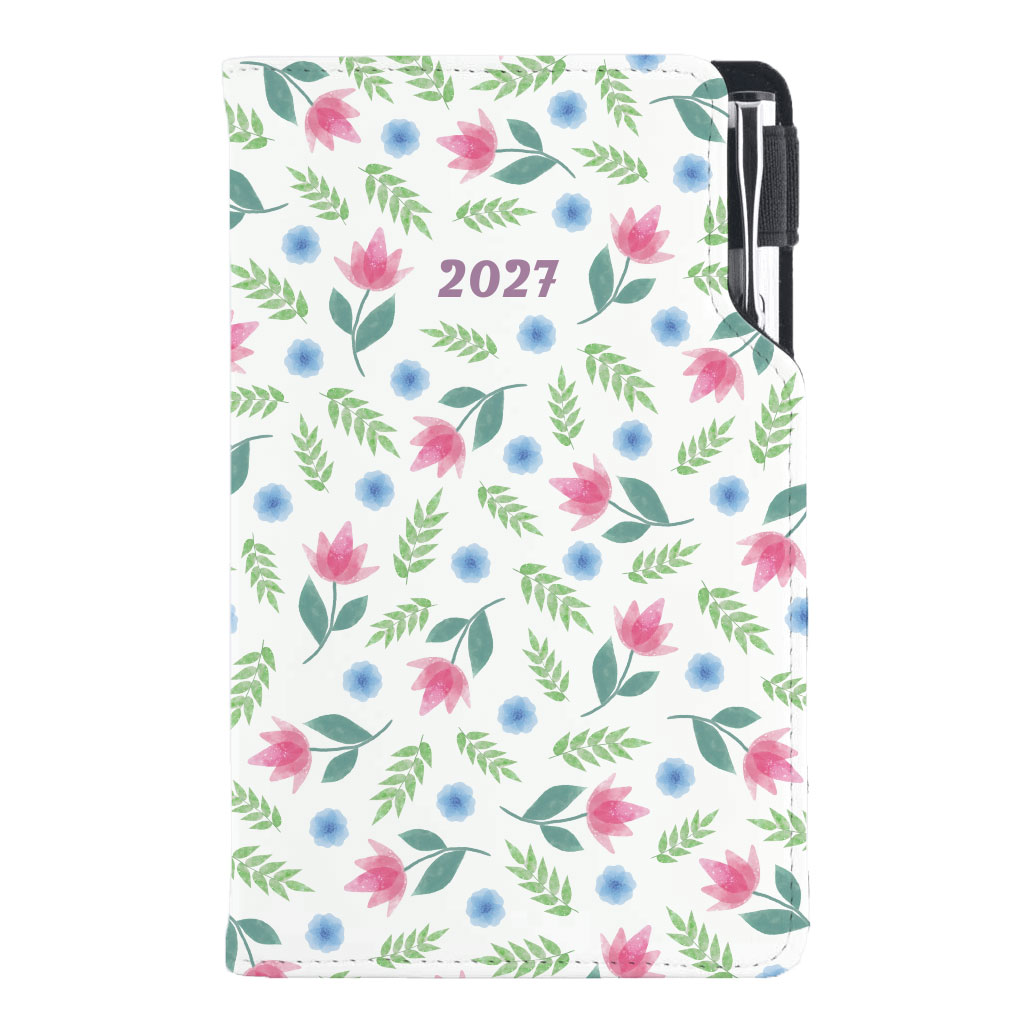 Kalendarz książkowy DESIGN tygodniowy kieszonkowy 2027 polski - Wiosenne kwiaty