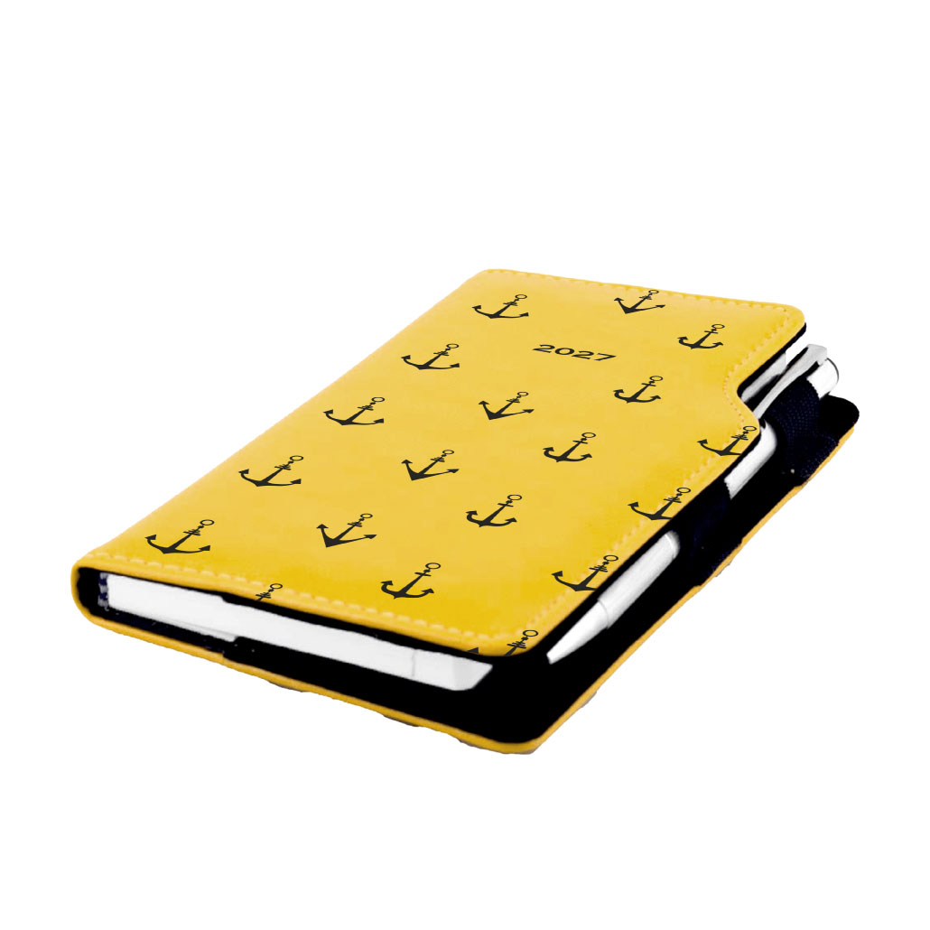 Kalendarz książkowy DESIGN tygodniowy kieszonkowy 2027 polski - żółty - marynarski- kotwice