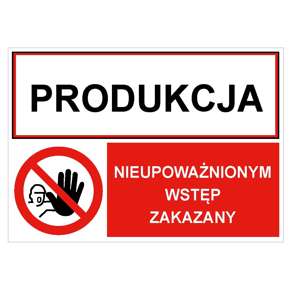 PRODUKCJA - NIEUPOWAŻNIONYM WSTĘP ZAKAZANY, ZNAK ŁĄCZONY, płyta PVC 2 mm, 210x148 mm