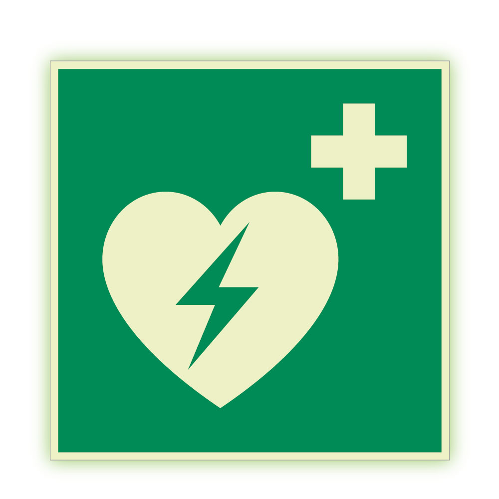 Defibrylator - fotoluminescencyjny znak, płyta PVC 1 mm 200x200 mm
