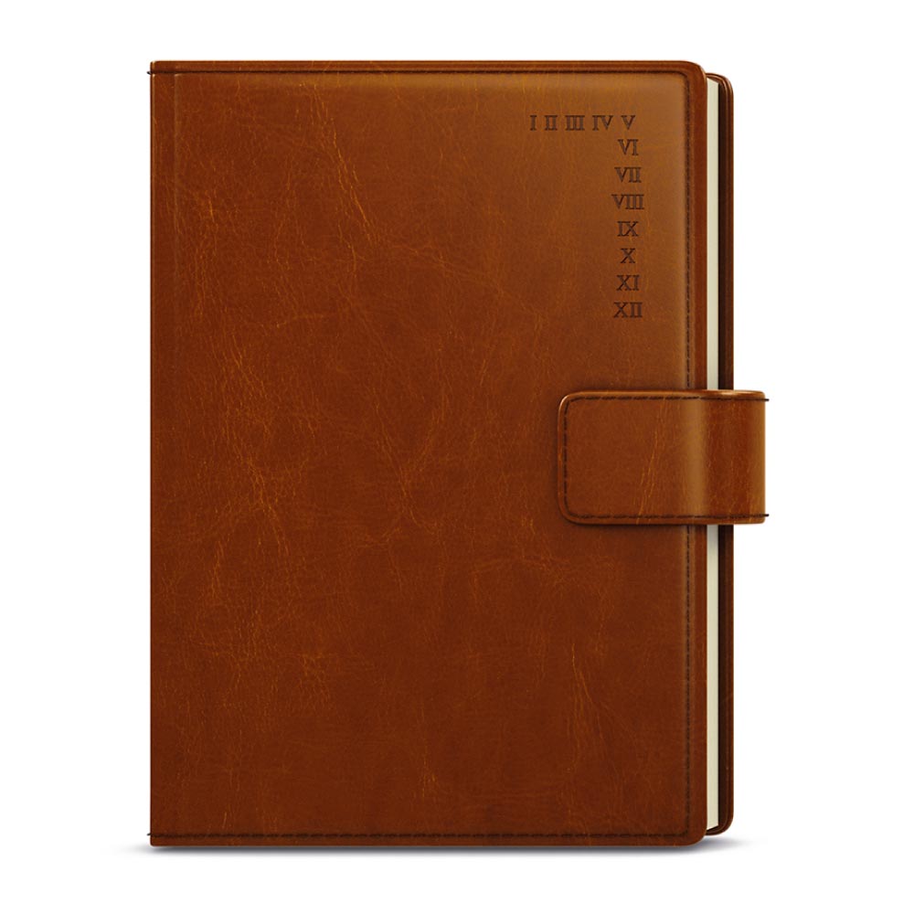 Ślepe tłoczenie roku, magnetyczne zapinanie, pętelkę na długopis, 3 wewnętrze kieszenie.