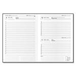 Rozmiar bloku: 120 x 165 mm Format: B6 Kalendarium: dzienne czeskie i słowackie z imionami Mutacje językowe: CZ, SK, ANG, D, RU Materiał wierzchni: gładka skóra ekologiczna Kolor bloku: biały, okrągłe odrywane rogi Ilość stron: 336 stron Wiązanie: