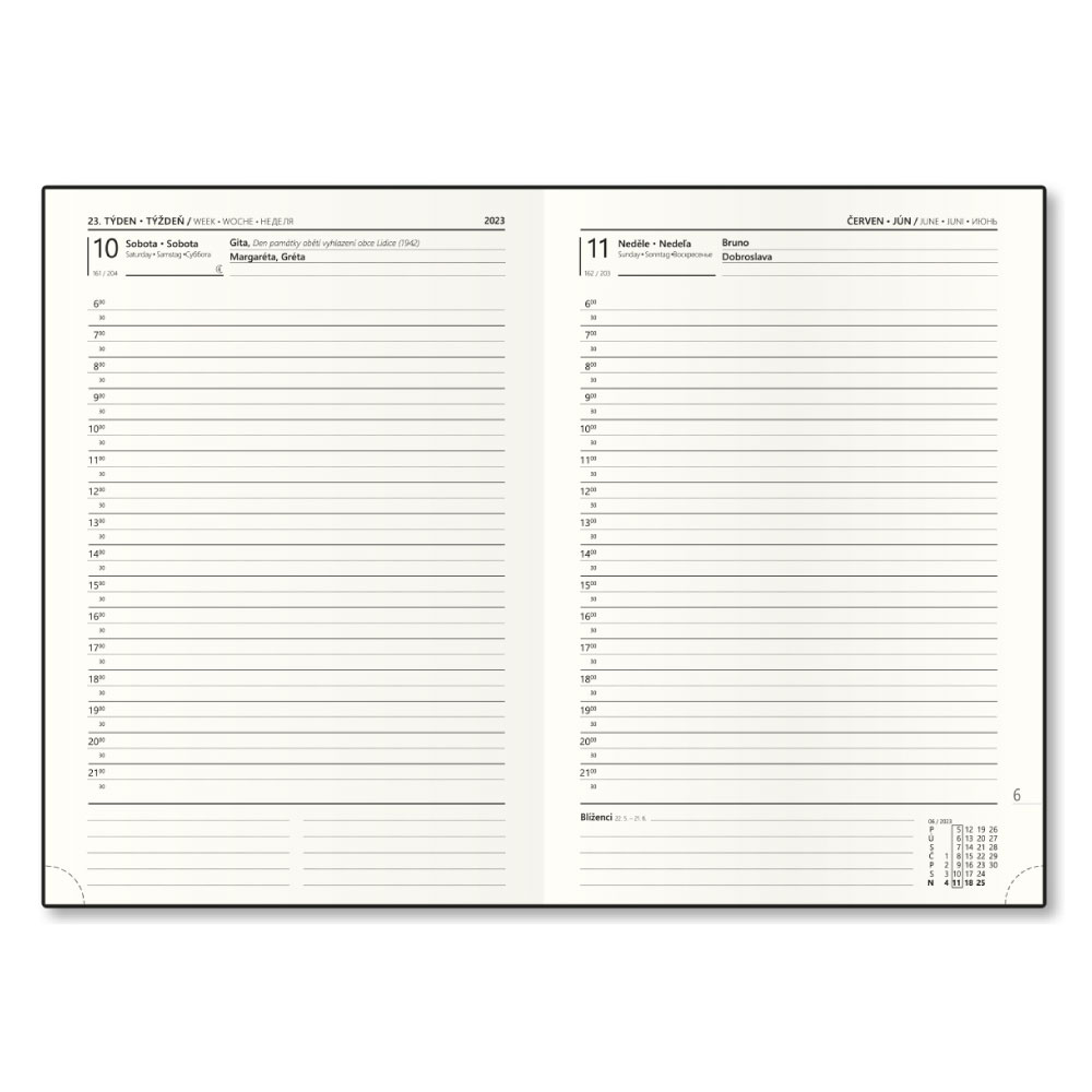 Kalendarium: dzienne czeskie i słowackie z imionami (SO/NE osobno na stronie)