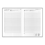 Wymiary: 143 x 205 mm Format: A5 Kalendarz: dzienny nominalny czeski i słowacki (sobota/niedziela osobno na stronie) Mutacje językowe: CZ, SK, EN, DE Materiał okładki: miękki, gładki materiał Papier: biały w perforowanych rolkach Liczba stron: 384