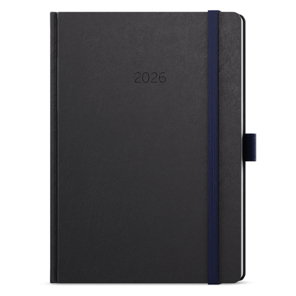 Zawiera wytłoczony rok, gumkę do zamykania i szlufkę na długopis.