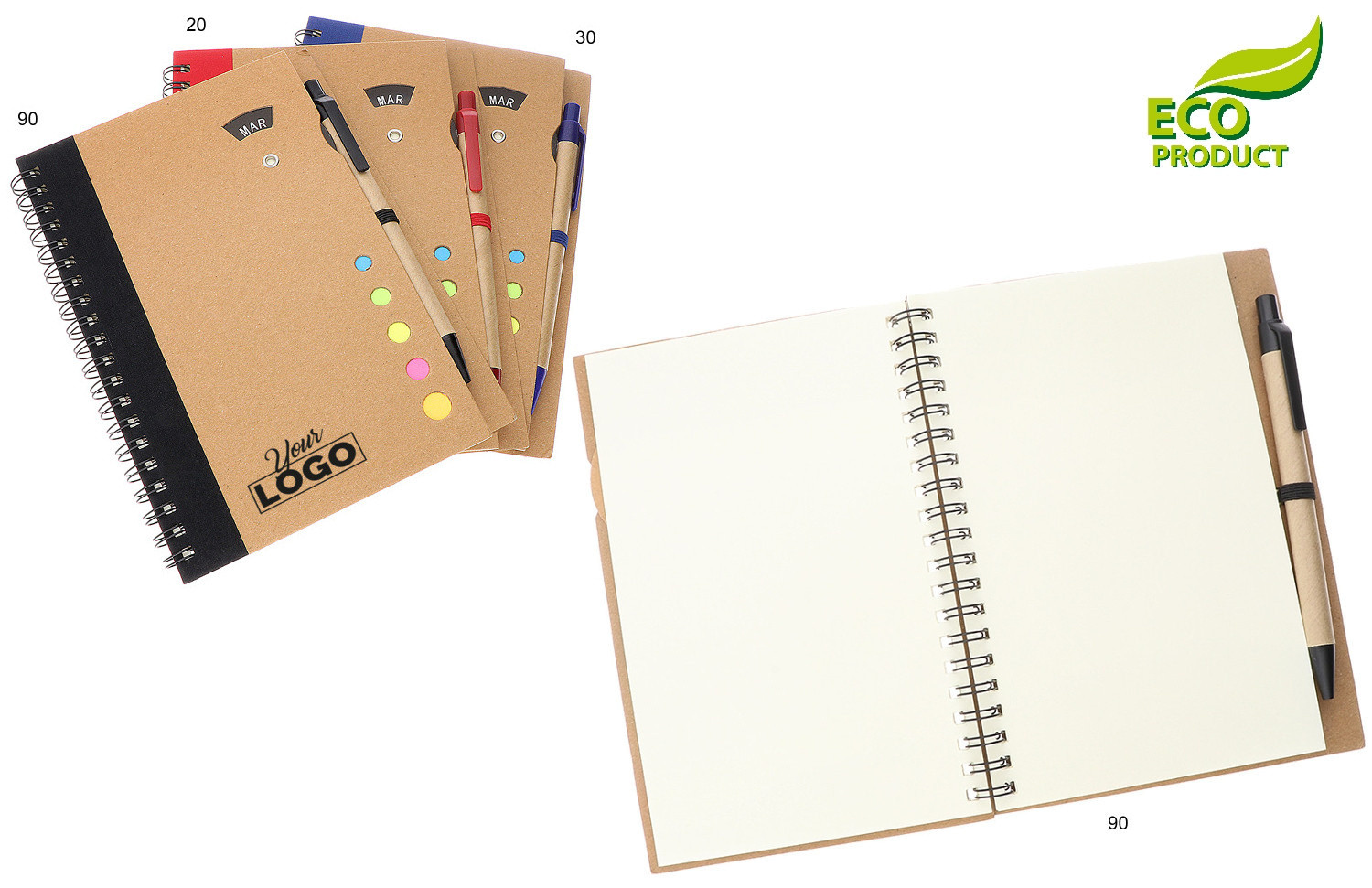 Ekologický poznámkový blok Mario s deskami z recyklovatelného kraftového papíru a kuličkovým perem - červená