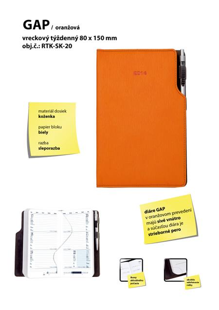 Gap kapesní slovenský diář 80x150 mm oranžová