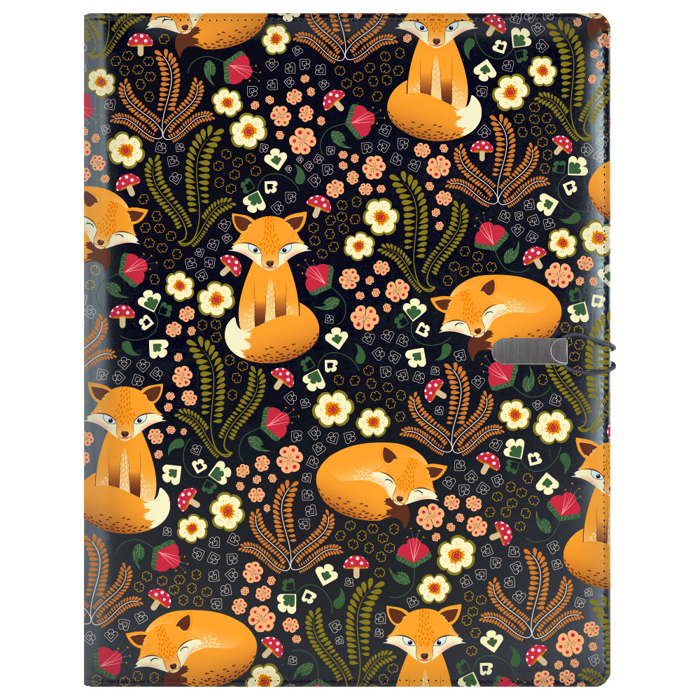 GEP DESIGN skórzana teczka konferencyjna w czarnym pudełku prezentowym - Lis z liniowanym blokiem - skóra ekologiczna