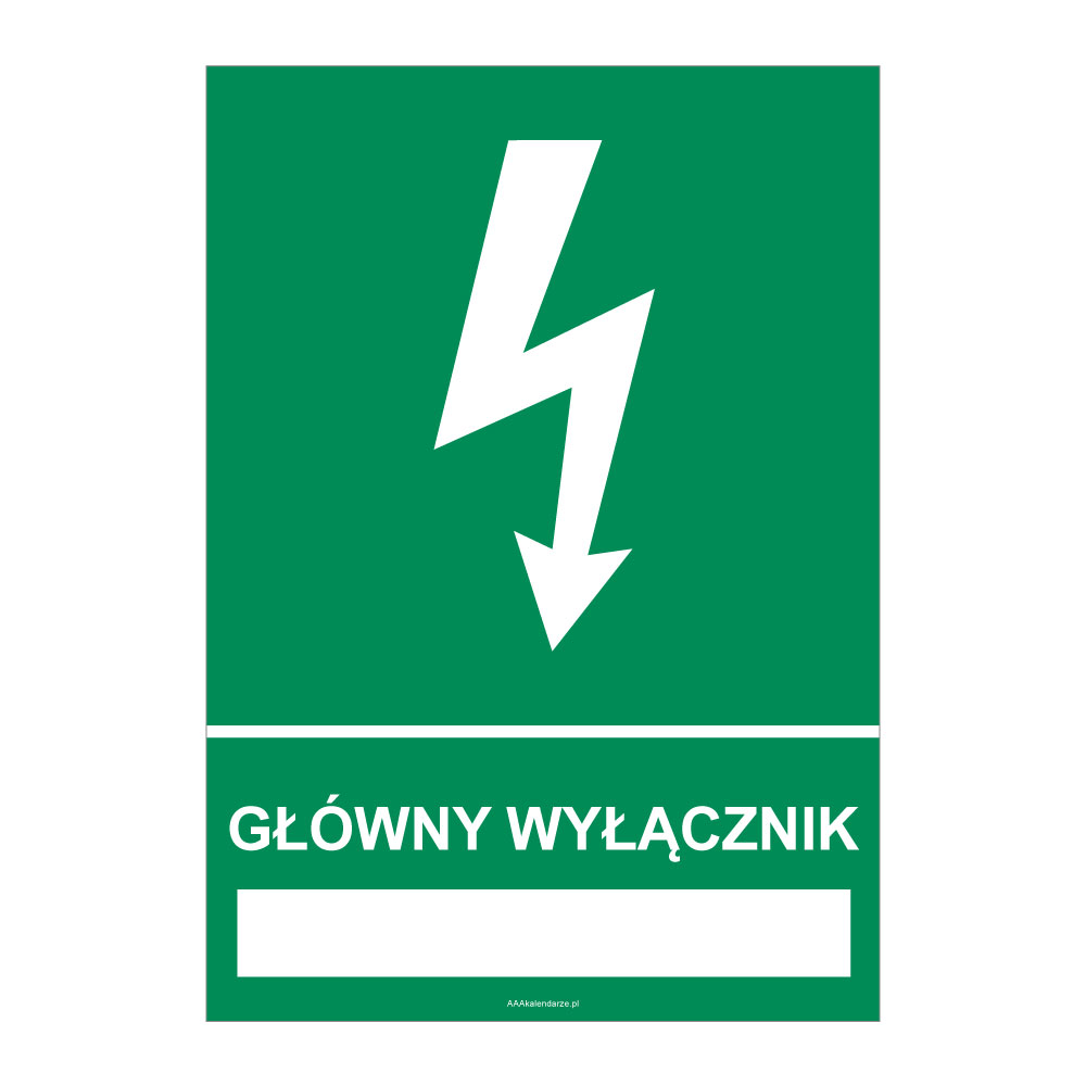 GŁÓWNY WYŁĄCZNIK ……………….., naklejka 148x210 mm