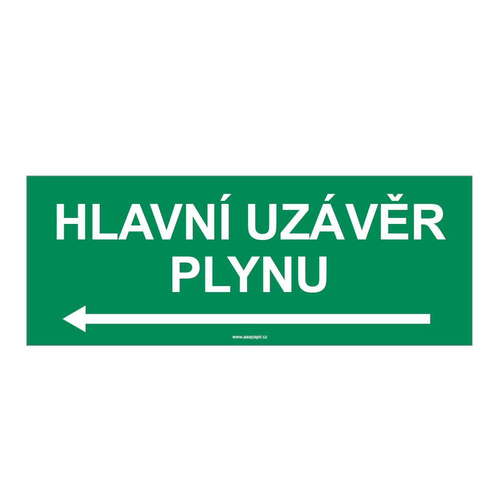 HLAVNÍ UZÁVĚR PLYNU VLEVO, Samolepka 210x80 mm