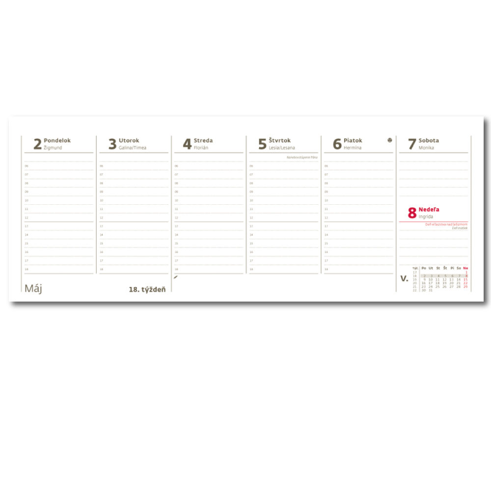 kalendarium - słowackie tygodniowe pionowe