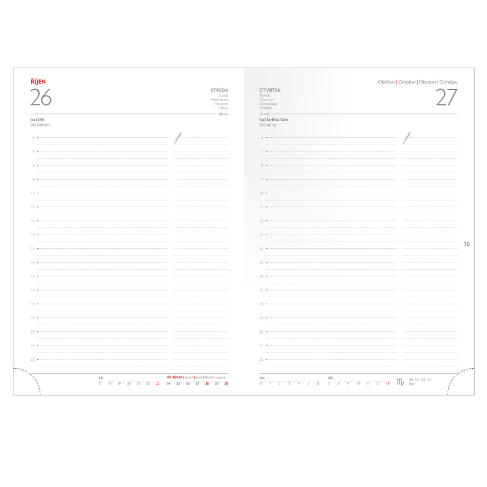 Kalendarz książkowy Amon 2016 dzienny A5 - niebieski Format: 148 x 210 mm Kalendarium: dzienny Zakres: 352 stron, papier - biały Materiał wierzchni: skóra ekologiczna Główny język: czeski, inne języki: SK, ANG, D, RU Strony informacyjne: czeskie i słowac