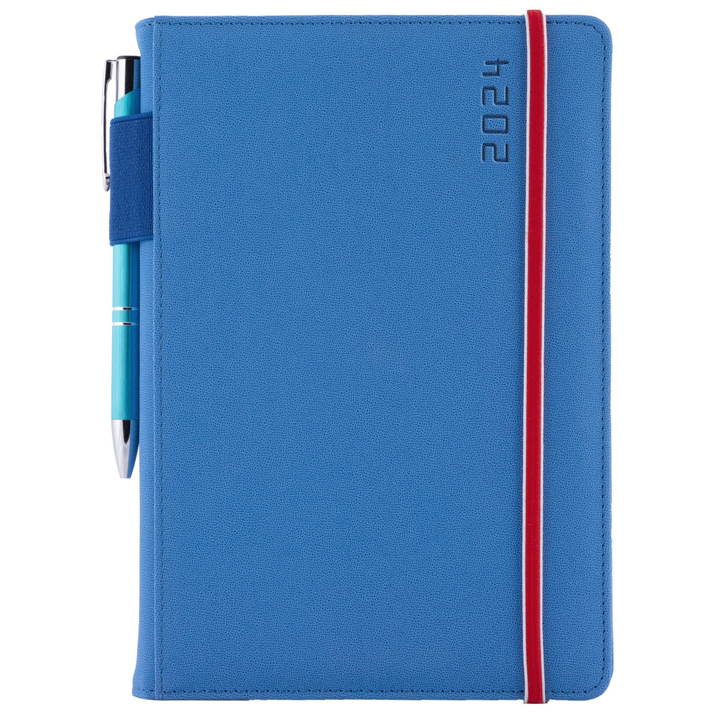 Kalendarz książkowy AMOS dzienny A5 2024 czeski - niebieski/czerwona gumka