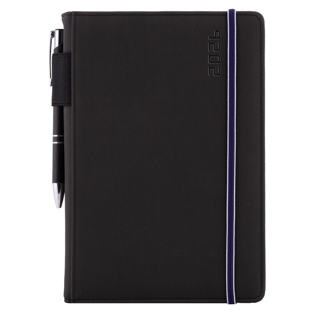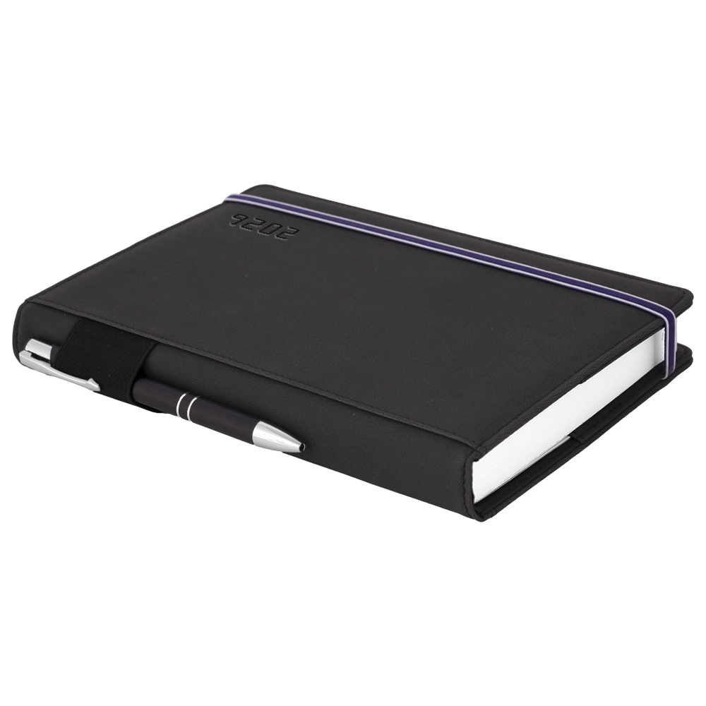 Kalendarz książkowy AMOS dzienny A5 2026 czeski - czarny/niebieska gumka