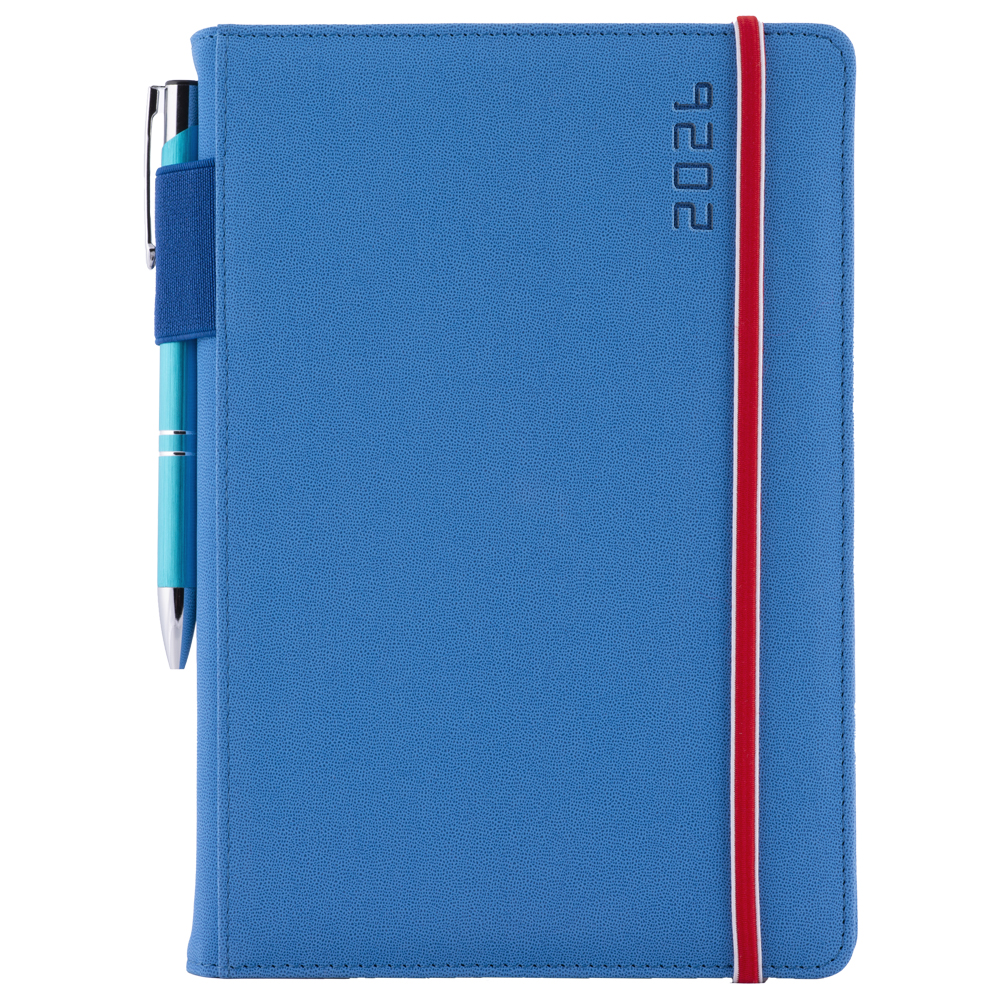 Kalendarz książkowy AMOS dzienny A5 2026 czeski - niebieski/czerwona gumka
