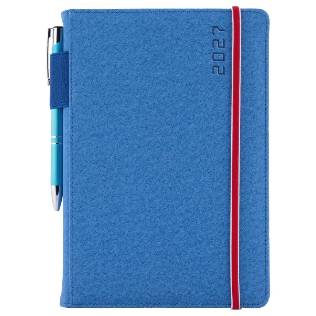 Kalendarz książkowy AMOS dzienny A5 2027 polski - niebieski/czerwona gumka