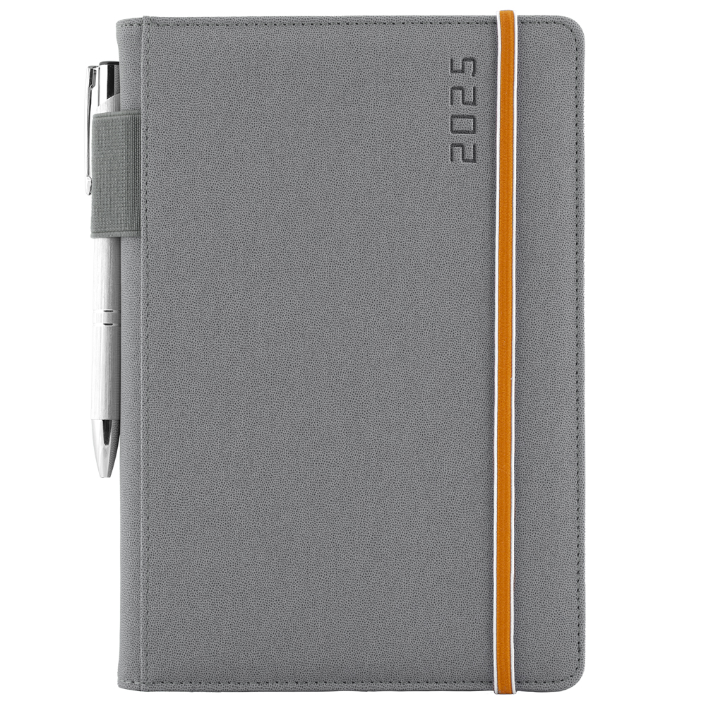 Kalendarz książkowy AMOS tygodniowy A5 2025 słowacki?? - szary/pomarańczowa gumka