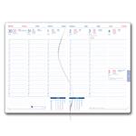 Format: A5 Rozmiar bloku: 143 x 205 mm Blok wkładany w oprawę Ilość stron: 142 stron Wiązanie: szew V8 Kalendarium: tygodniowe czeskie z imieninami Mutacje językowe: CZ, SK, EN, DE, RU Kolor bloku: biały Kolor czcionki: niebieski i czerwony Mate