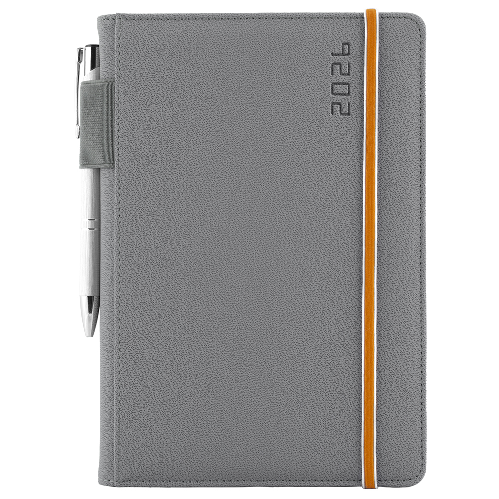 Kalendarz książkowy AMOS tygodniowy A5 2026 czeski - szary/pomarańczowa gumka