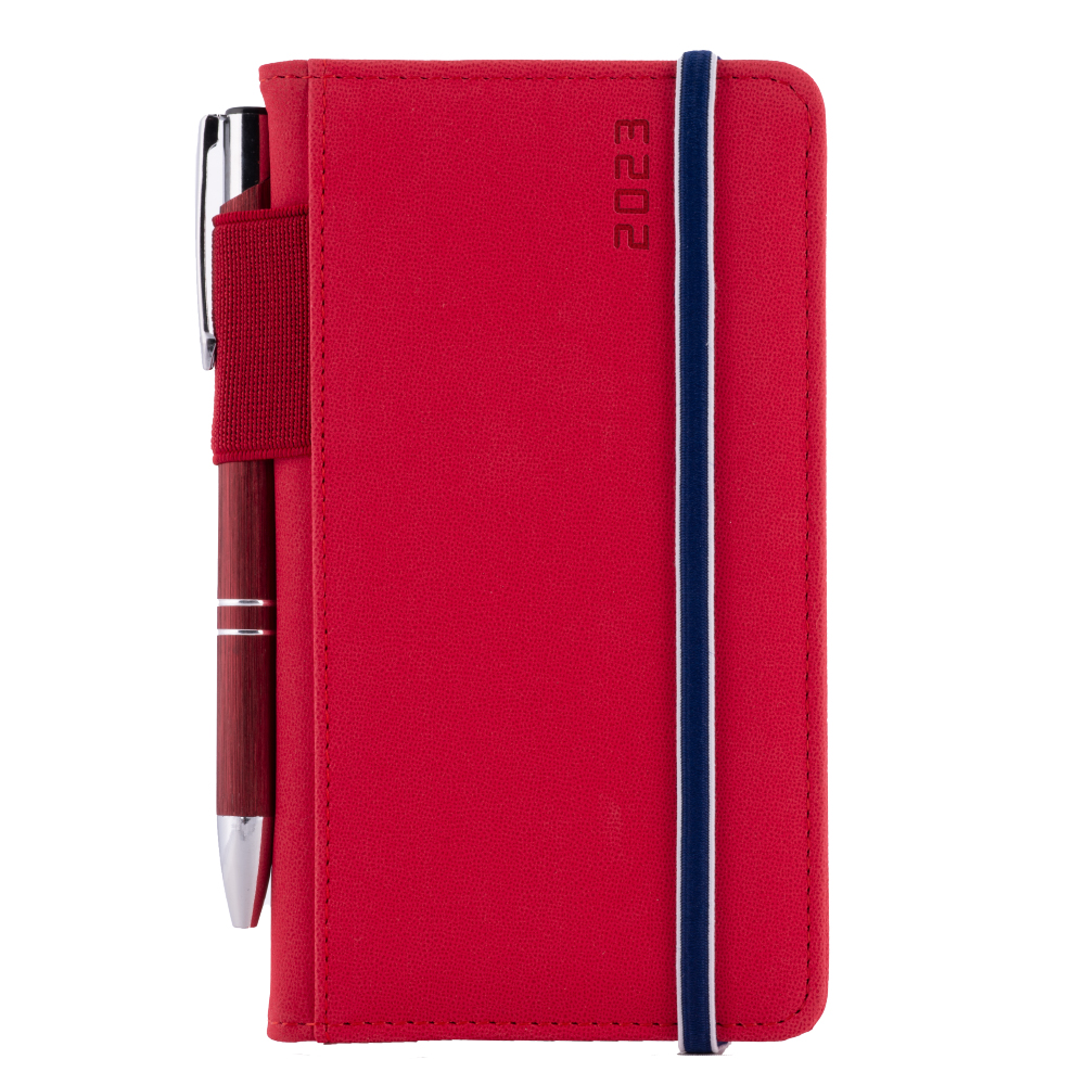 Kalendarz książkowy AMOS tygodniowy kieszonkowy 2023 czeski - czerwony/niebieska gumka