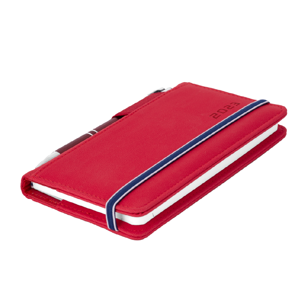 Kalendarz książkowy AMOS tygodniowy kieszonkowy 2023 słowacki?? - czerwony/niebieska gumka