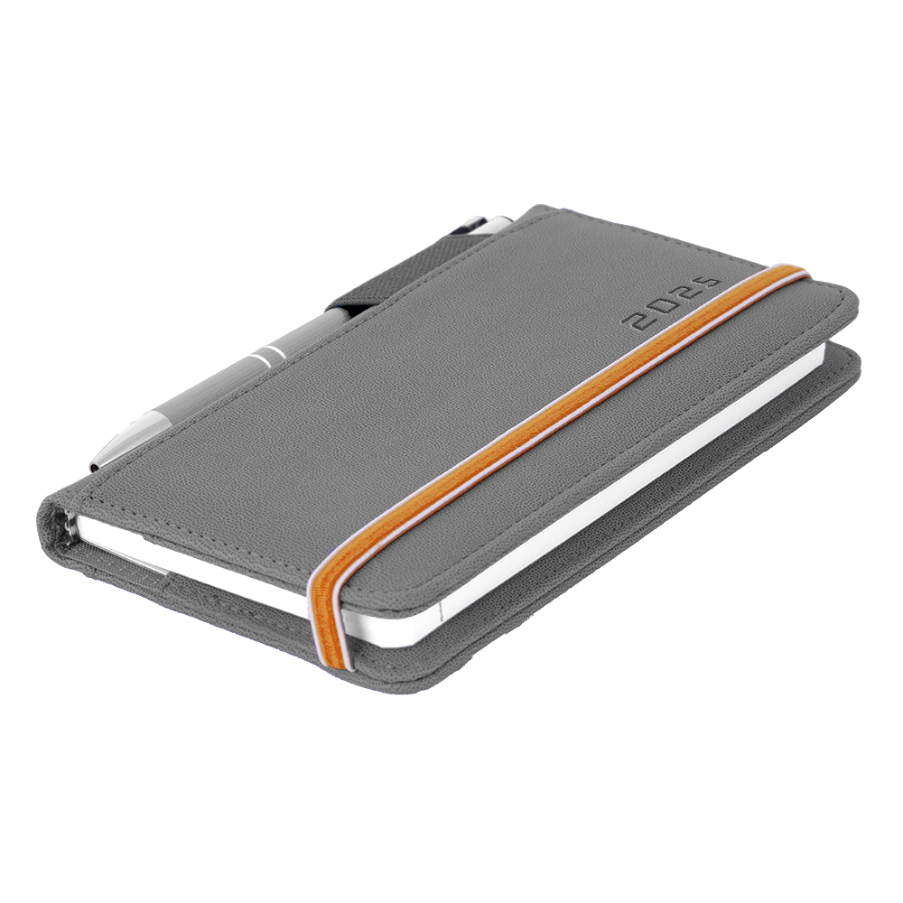 Kalendarz książkowy AMOS tygodniowy kieszonkowy 2025 czeski - szary/pomarańczowa gumka