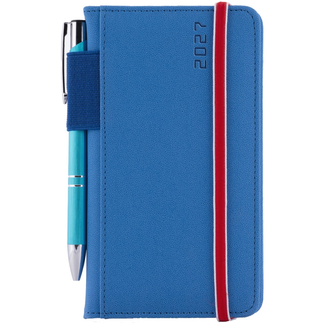 Kalendarz książkowy AMOS tygodniowy kieszonkowy 2027 polski - niebieski/czerwona gumka