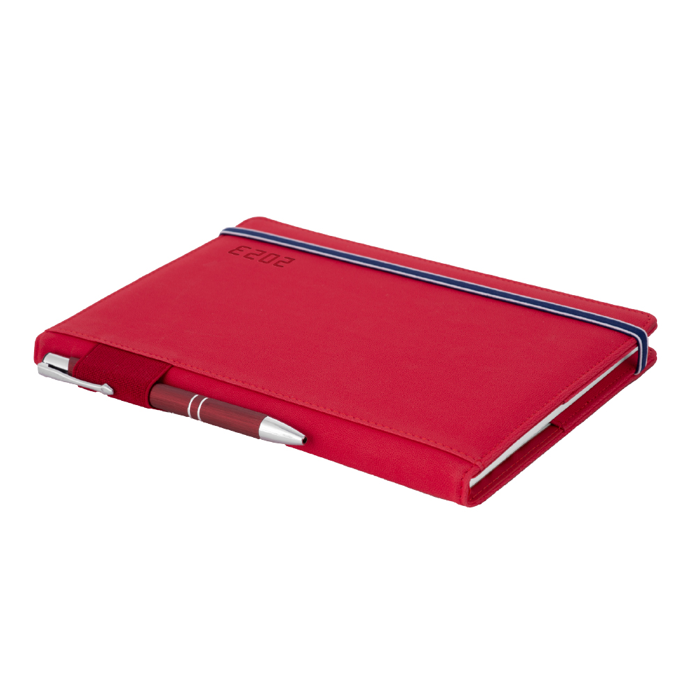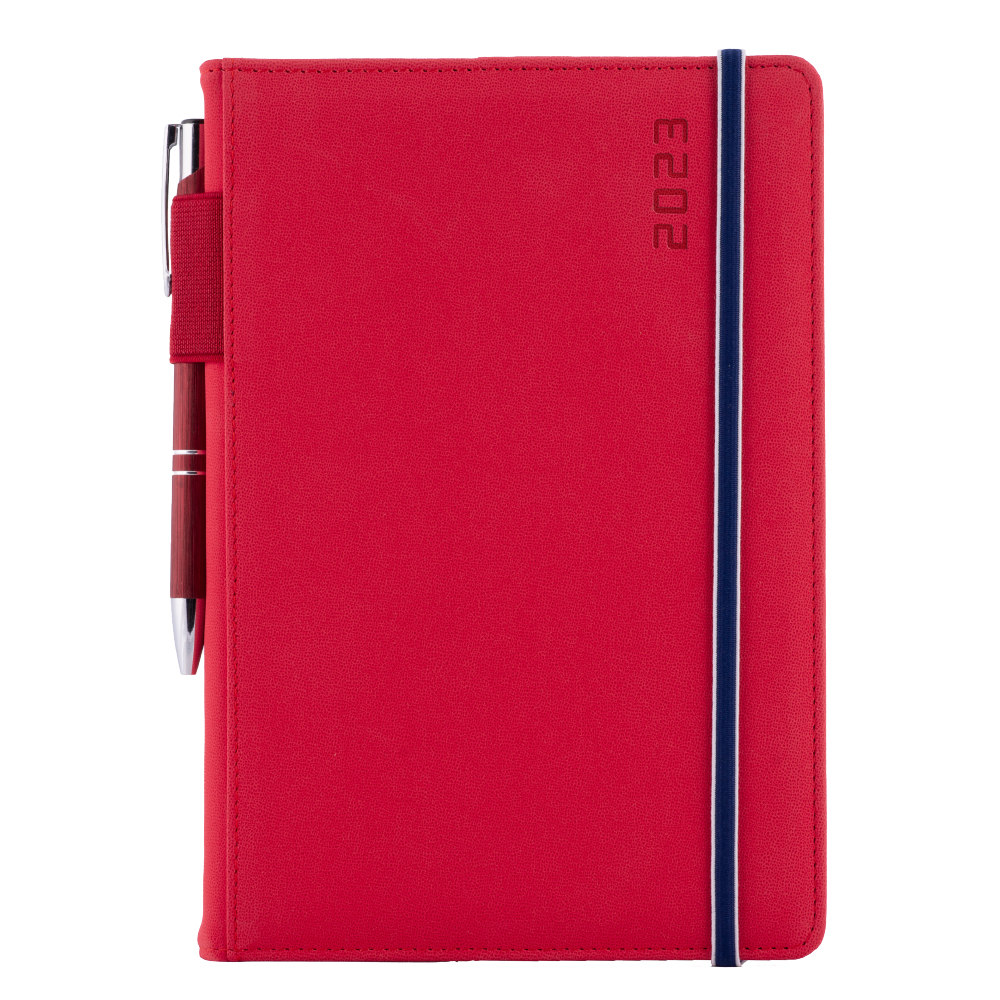 Kalendarz książkowy AMOS tygodniowy z notesem A5 2023 CZ/SK - czerwony/niebieska gumka