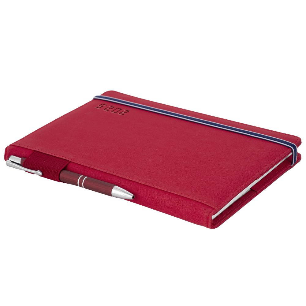 Kalendarz książkowy AMOS tygodniowy z notesem A5 2025 CZ/SK - czerwony/niebieska gumka