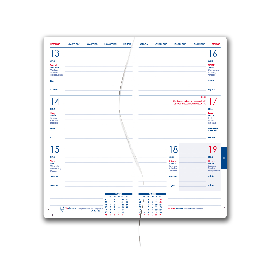 Kalendarz książkowy BRILIANT tygodniowy kieszonkowy 2023 czeski - złoty