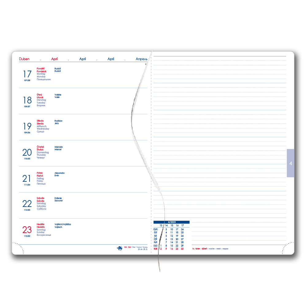 Kalendarium: tygodniowe CZ/SK (Lewa strona kalendarium, prawa strona notatnik)