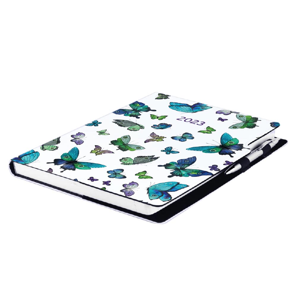 Kalendarz książkowy DESIGN tygodniowy A4 2023 - Niebieskie motyle
